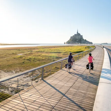 Cycle to Mont-Saint-Michel on 3 trails, through the Normandy Bocage and its green meadows, the Vire Valley, and the Sélune Valley.