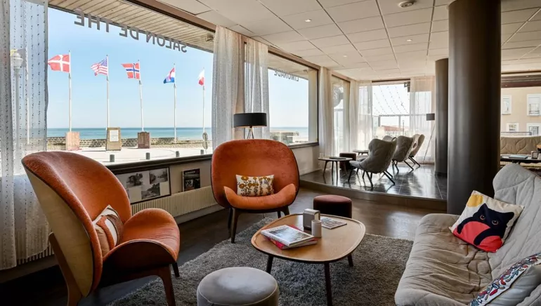 Restaurant Hotel of good standing with contemporary design located in front of the sea on the coast of Nacre in Basse-Normandie in the heart of the fine sandy beaches which saw the allied landing 70 years ago. Traditional cuisine with formulas from 20€.