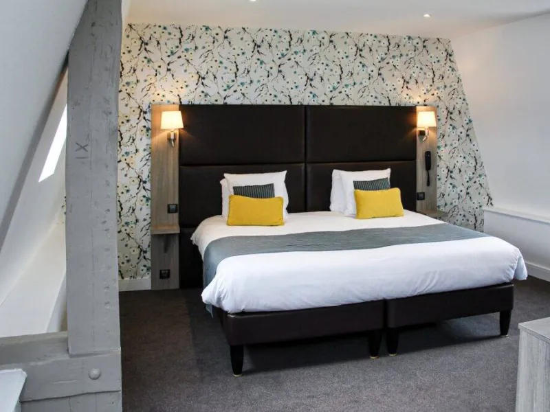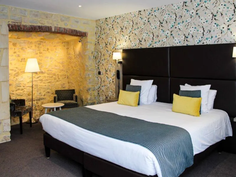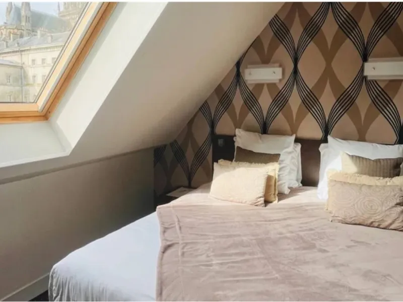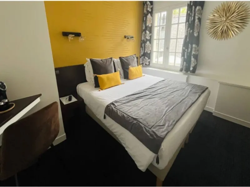 Hotel complex divided into 3 categories: Queen Mathilde, the Annex and the House of Mathilde. Located in the old town of Bayeux, 150m from the Cathedral and the Tapestry, these 32 air-conditioned rooms are equipped with beds in 160 or 180, shower-wc, direct telephone, TV and free WiFi access. Moreover, the rooms of the Annex and the House of Mathilde are equipped with a welcome tray. You will also find a mini bar at your disposal in the Maison de Mathilde.The hotel's terrace, weather permitting, will welcome you for your breakfast with local products. Take advantage of our restaurant in the heart of a green setting and its sunny terrace, by the river.