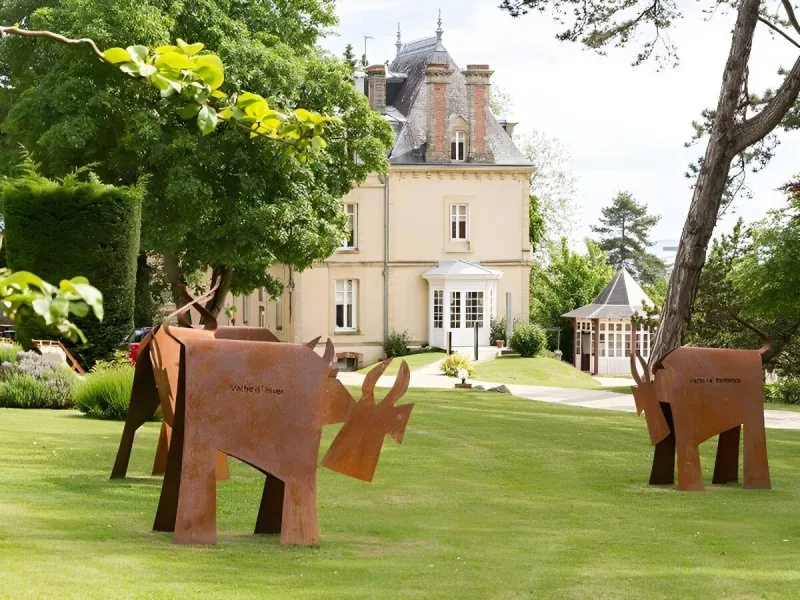 On the road to Deauville and Mont Saint Michel, located on the D-Day beaches, Les Villas d'Arromanches is 8 km from Bayeux and 18 km from the American cemetery in Colleville sur mer.In the heart of a wooded park, in a quiet environment, the large stone building and the 19th century half-timbered building will welcome you for a stopover or a stay in comfortable rooms.