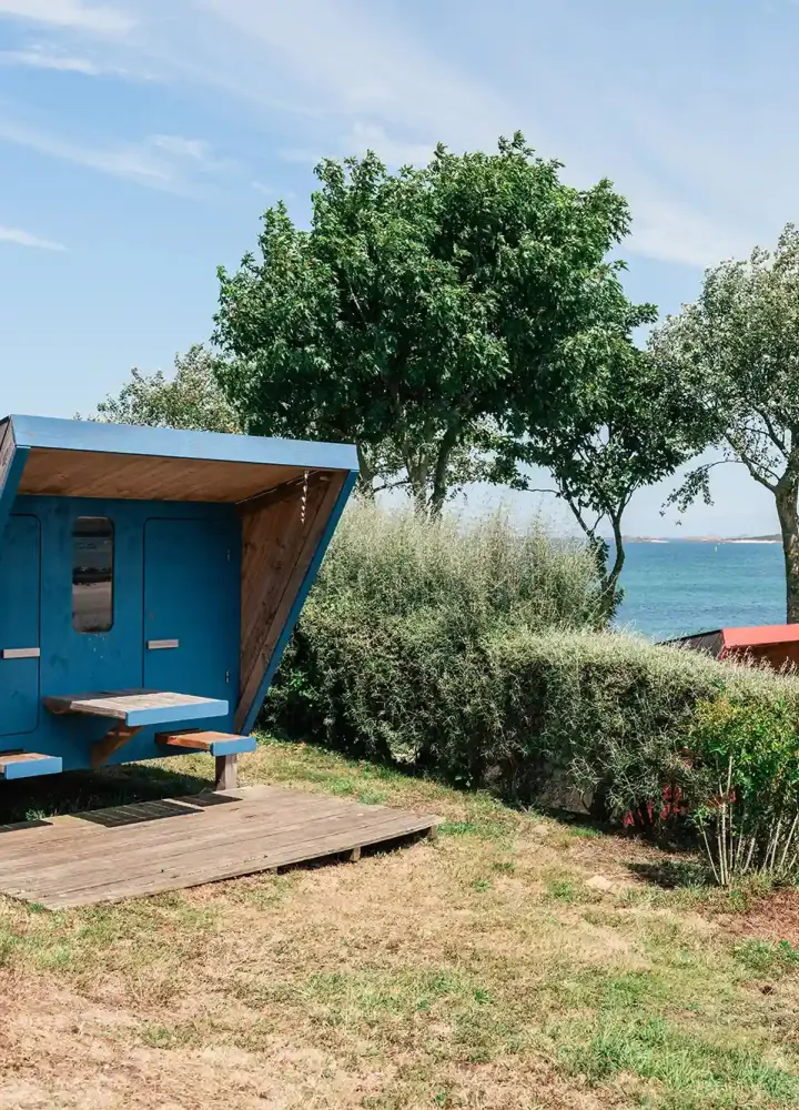 4 Cabanes étapes vous accueillent face à la mer au Camping Municipal Les Fauvettes à Binic-Étables-sur-Mer. Chaque cabane est composée d'un lit douillet double, un espace pique-nique à l’abri avec table et chaises, et de quoi ranger vos sacoches.