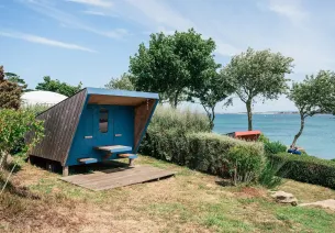 2 Caban'étapes Ty Moutic vous accueillent face à la mer au Camping 4* Ar Kleguer. Chaque cabane est composée d'un lit douillet double, un espace pique-nique à l’abri avec table et chaises, et de quoi ranger vos sacoches.
