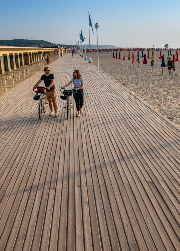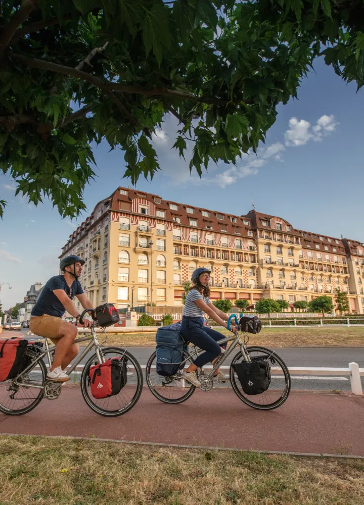 Vous passez par la Côte Fleurie en Normandie pour votre prochaine escapade sur La Vélomaritime ? Faites escale à Deauville, à côté de Trouville ! Cette ville côtière rime avec vacances de luxe, plages et villas de la Belle Époque. Alors, lâchez le guidon quelques heures et partez à la découverte de Deauville !